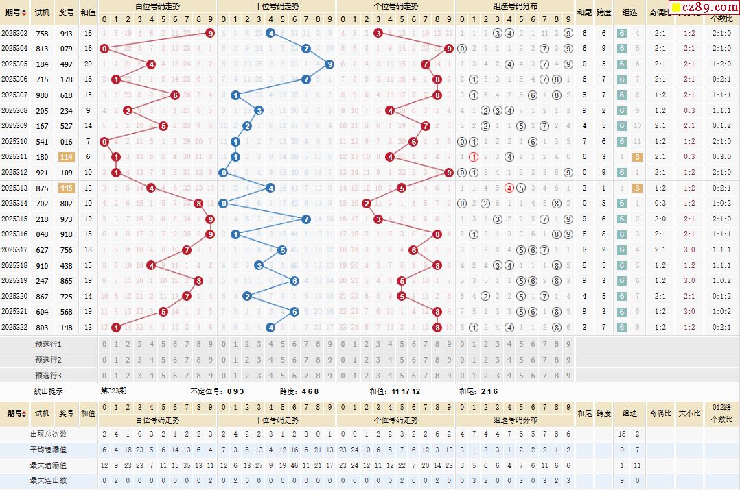 > 323期体彩排列3近期历史号码图表